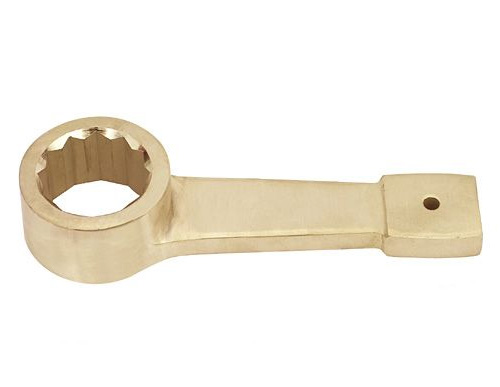 凸形梅敲击花扳手主要采用铝青铜合金加工制造,工作端为凸型的敲击梅花扳手。所谓凸型较之一般的扳手工作端要高,这样扳手的扭力会增大。