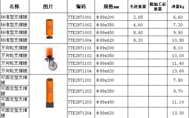 标准型支撑腿特性